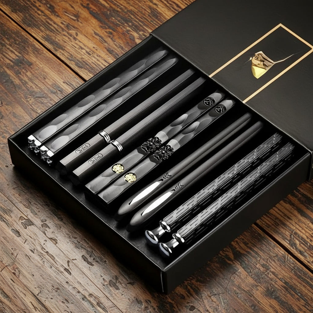 Luxury Chopsticks Gift Set – Nordic-Style Alloy Non-Slip Heat-Resistant Reusable Chopsticks