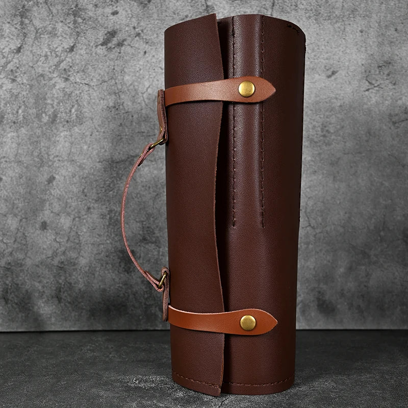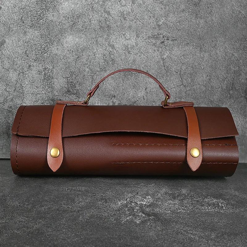 Crafted from high-quality PU leather, this roll bag combines a sophisticated appearance with rugged performance. Its eco-friendly, water-resistant material protects your knives from scratches, dust, and moisture while maintaining a sleek, professional look. Reinforced stitching and brass hardware ensure long-lasting strength and dependability.