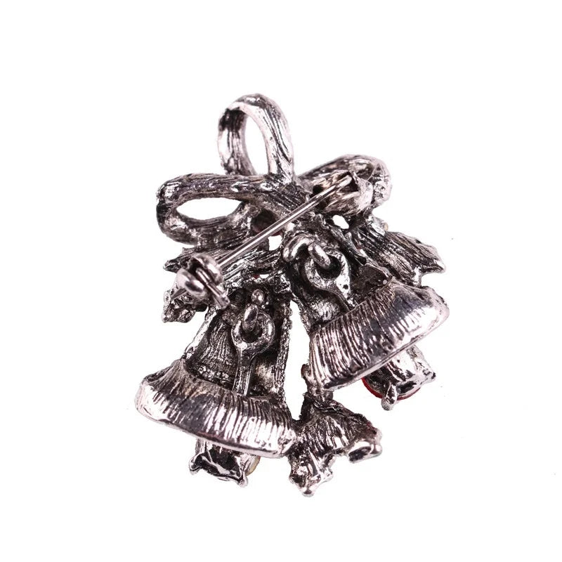 Christmas Festival Bell Brooch – Rhinestone Bow Pin
