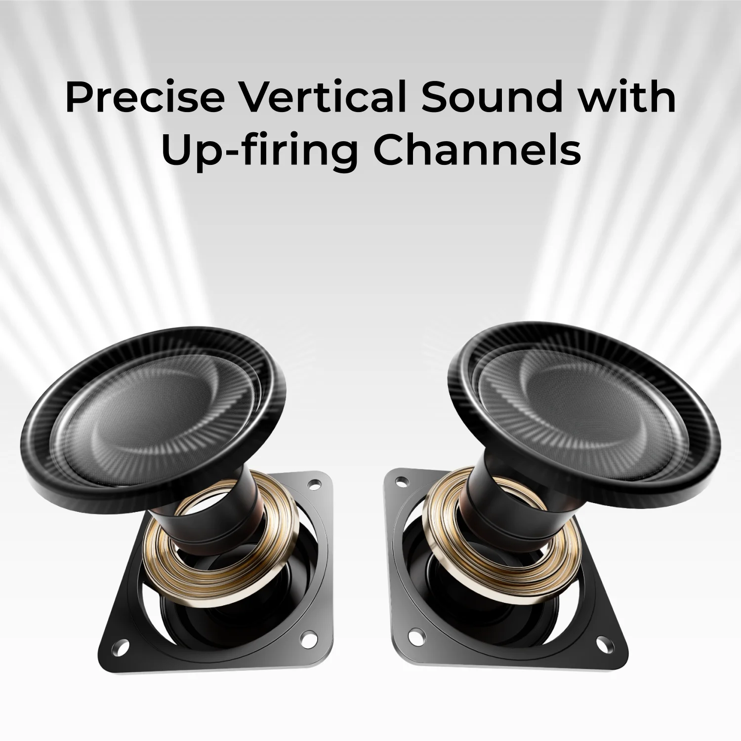 Engineered with aerospace-grade neodymium magnets and 18-core voice coils, the up-firing drivers create vertical dimension for Dolby Atmos content — whether it’s a plane flying overhead or rain falling from above, you’ll hear every detail with perfect positioning.