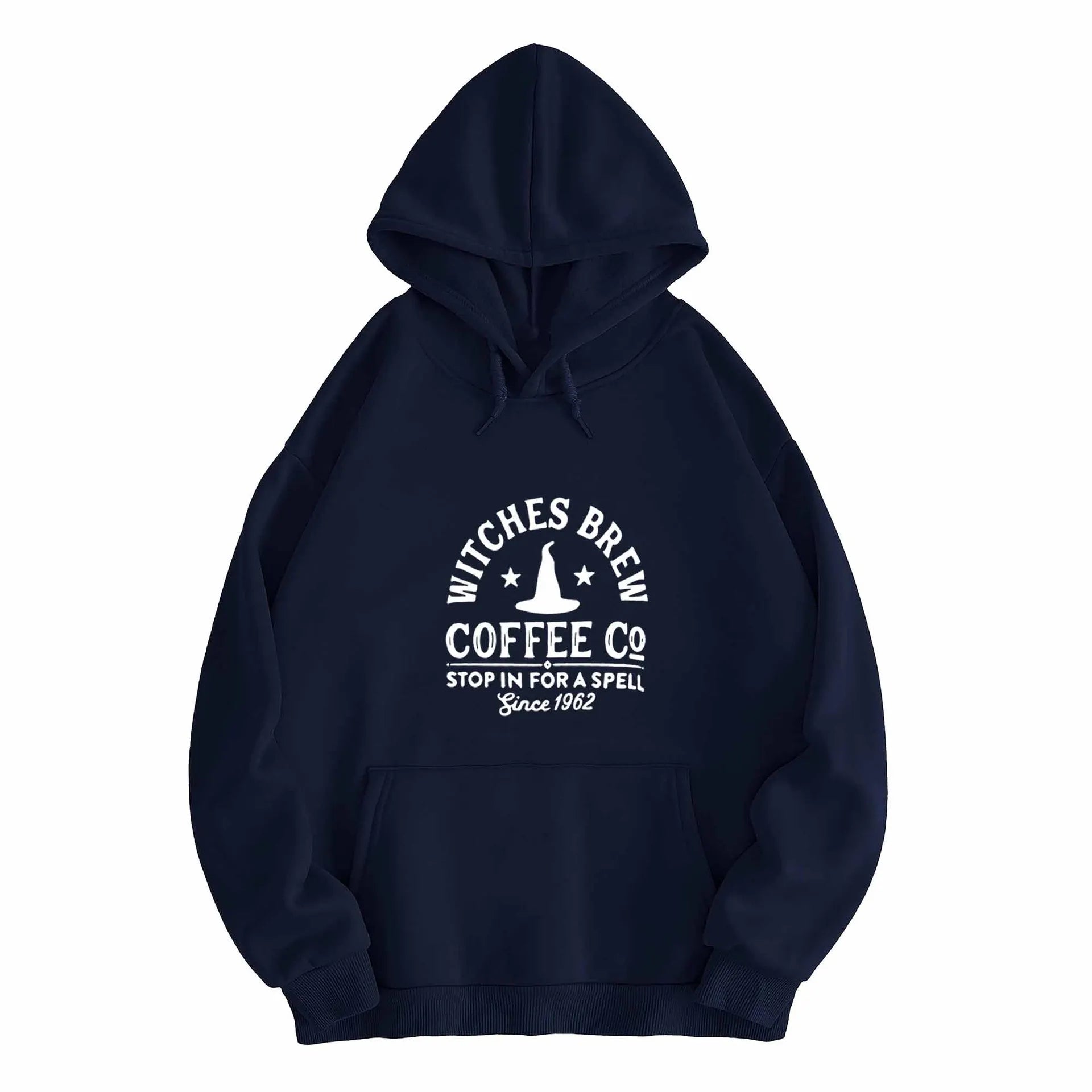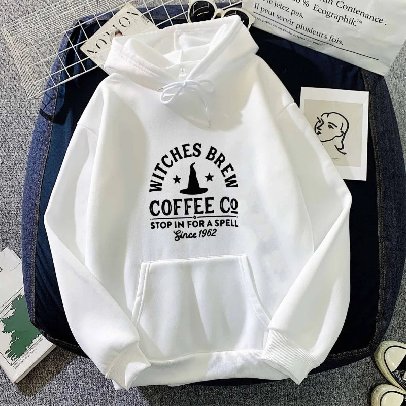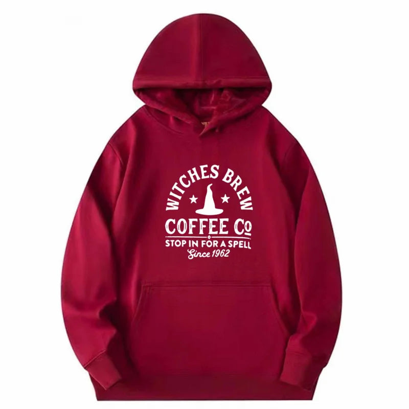 Add a little magic to your wardrobe this season with the Witches Brew Coffee Co. Hoodie, designed for women who love comfort, style, and a touch of Halloween spirit. Featuring a bold witch hat graphic and vintage coffee shop lettering, this hoodie is perfect for cozy fall nights, casual streetwear, or layering on chilly winter days.
