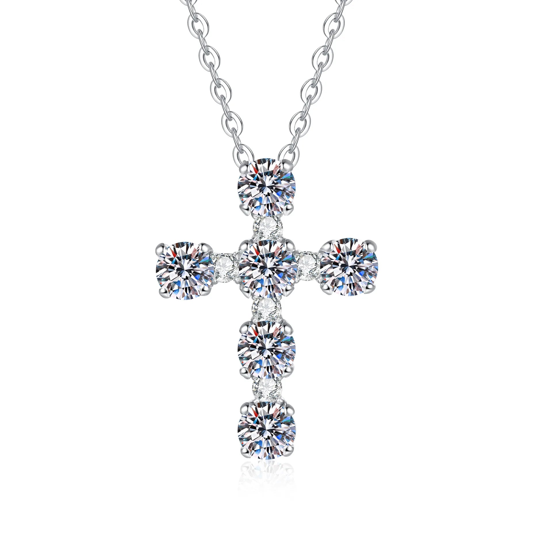 The balanced proportions and geometric silhouette create a modern yet reverent interpretation of the classic cross. The clean lines allow the brilliance of the stones to remain the focal point, making the piece understated yet deeply expressive.